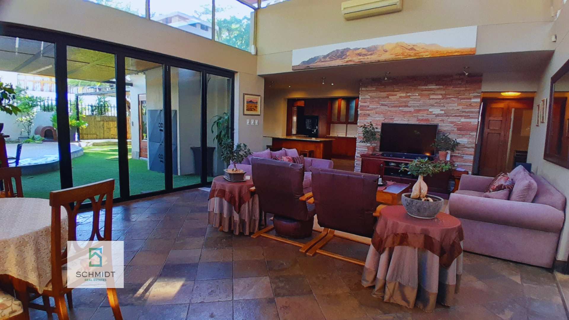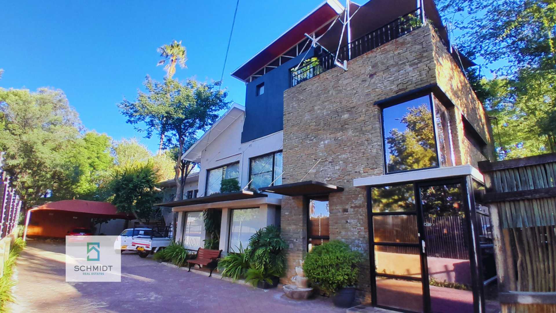 Positioned in one of Windhoek’s most desirable neighborhoods, this elegant double-story residence combines luxury living with professional functionality. Zoned “Residential” with approved “Home Office” consent, it is ideal for families and professionals alike.